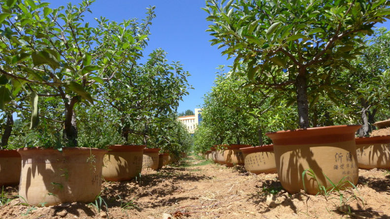 盆景园占地 160亩。拥有苹果盆景——寓意平平安安、葡萄盆景——寓意一本万利、石榴盆景——寓意多子多孙、桃李盆景——寓意桃李天下、杏树盆景——寓意杏坛授人、柿树盆景——事事如意等以苹果盆景为主的多品种果树盆景。